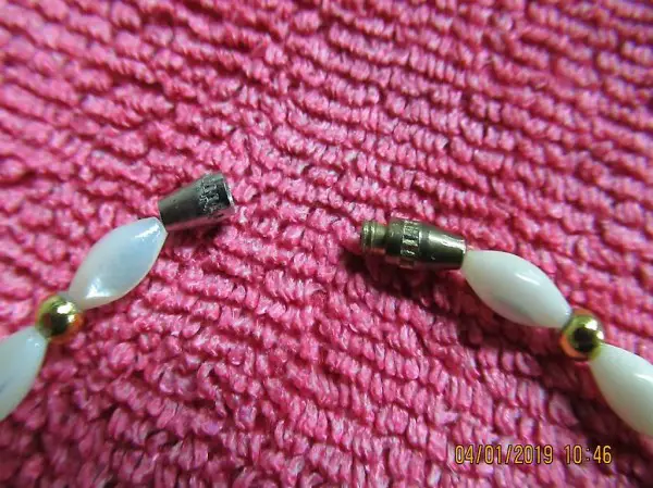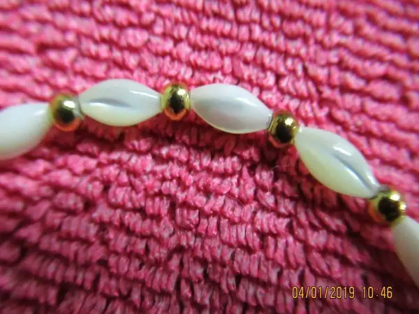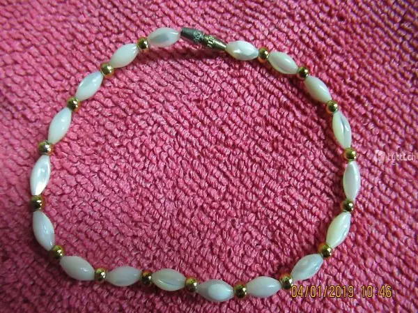 Grösse 19,5 cm, längliche Perlen mit Gold Kugeln dazwischen,