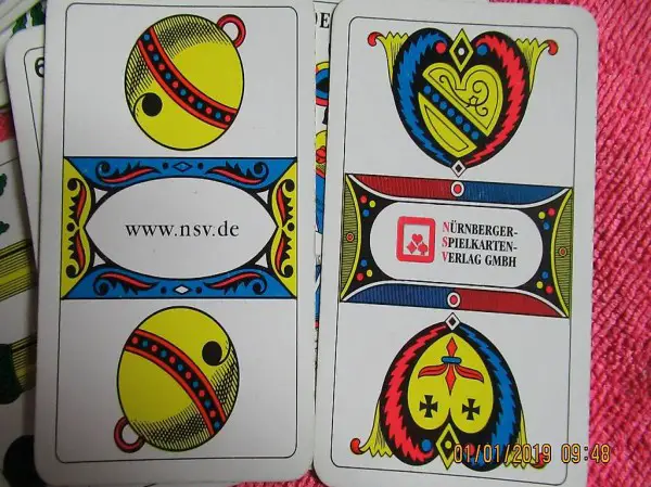 Deutsche Spielkarten, Schweizer Spielkarten, Stöck, Wys Stich, Karten mit der Aufschrift WÜRTH , im Schellenass www.nsv.de, im Schilten Ass Nürnberger Spielkarten Verlag GMBH NÜRNBERGER SPIELKARTEN VERLAG GMBH vollständig in sehr gutem Zustand,