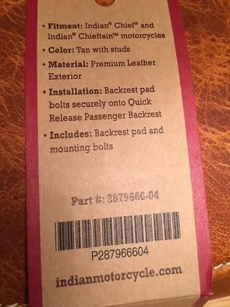 With this Passenger Backrest Pad, a passenger will ride in comfort and enjoy confidence-inspiring support mile after mile. This Backrest Pad is covered with premium Genuine Leather and trimmed with or without polished studs, so it adds to your bikes great look. The leather matches other recommended
