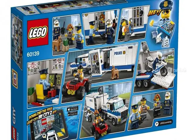 Die Mobile Einsatzzentrale verfügt über ein abkoppelbares Zugfahrzeug und eine Gefängniszelle mit Aussbruchfunktion und Platz für zwei Minifiguren