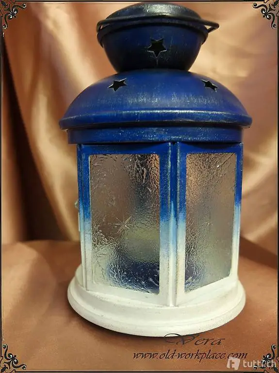 hübsche Laterne Teelicht trendige Farbe Blau-Weiss