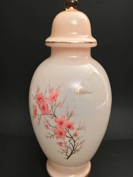 Vaso Murano rosa in condizioni ottime con decorazioni floreali dipinte a mano, misura 27x15 cm, pesa 550 gr.