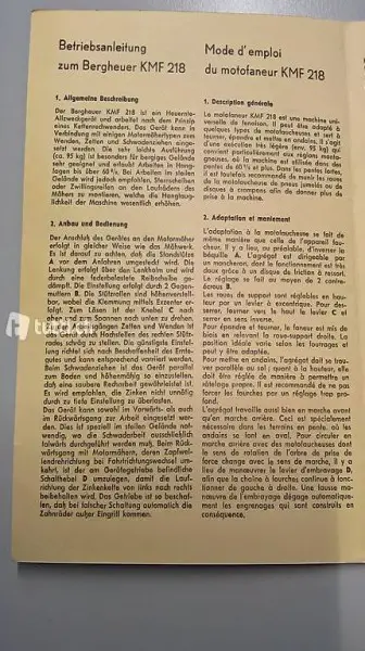 KMF 218 Bergheuer Betriebsanleitung + Ersatzteilliste ( PDF)