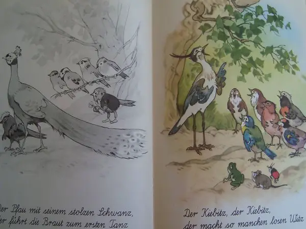 1) Die Vogelhochzeit: eine lustige Geschichte. Bilder von Fritz Baumgarten. Erschien 1960 im Engelbert Dessart Verlag, Bad Aibling.