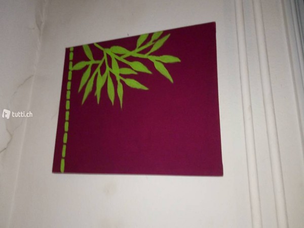 Wandbild Bamboo - grün auf Pink 2 Stück 70x50