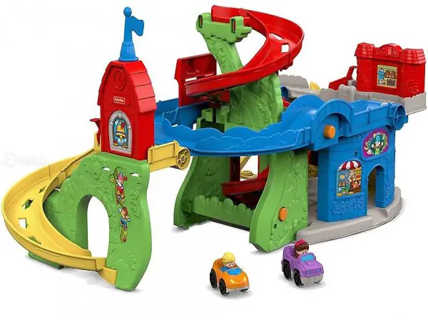Bei der Little People Hochhausrennbahn steuert das Kind den Fahrspass selbst. Es kann die Wheelies-Fahrzeuge auf der horizontal ausgerichteten Bahn die Strassen entlang- und die Rampen hinunterflitzen lassen. Zum Auftanken wird unten an der Zapfsäule ein kurzer Stopp eingelegt. Ist die Rennbahn vertikal ausgerichtet, geht es erstmal über 90 cm nach oben. Dort kann das Kind seine Wheelies-Fahrzeuge aufstellen und über die Spiralrampen bis ganz nach unten sausen lassen. Mit Hilfe der Eltern lässt sich die Hochhausrennbahn beliebig in der gewünschten Ausrichtung aufbauen. So kann sich das Kind immer wieder neue Abenteuer ausdenken, egal ob es im Sitzen oder im Stehen spielen möchte.