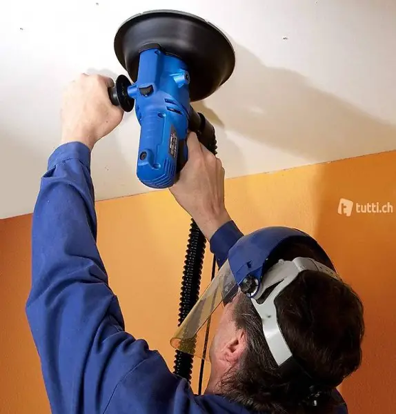 Staubfangsack fü staubfreies Arbeiten Langer Absaugschlauch Schleifen von Decken, Fliesen oder etc. Technische Daten: Netzanschluss: 230V~50Hz Aufnahmeleistung: 710 Watt Leerlaufdrehzahl: 1500 - 3000 min-1 Schleifplatten - Ø: 180 mm Drehzahlregelung: 6 - stufig Anschlusskabellänge: 4,0 m Länge Absaugschlauch: 1,5 m Gewicht: 2,4 kg