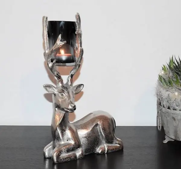 Das Rentier trägtu auf seinem Haupt ein anmutiges welches mit einem schicken