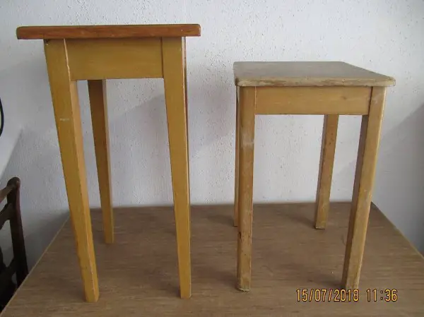 weiter stehen 4 Taburettli, Tabourettli, Holzstühle