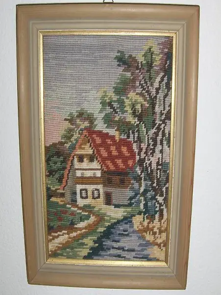 Bild mit Rahmen 1953 gehäkler oder Gestrickt