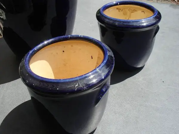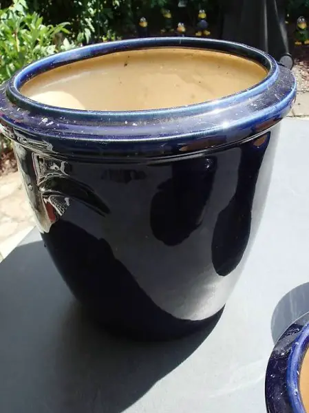 Blumenübertöpfe, 3 Stück, blau, gebraucht, 1 Stk. Durchm. 29,5, H 22.5, 2 Stk. Durchm. 17cm, H 13cm, müssen abgeholt werden,