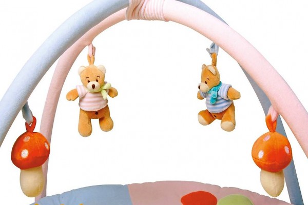 Bärchen mit Quietschgeräuschen, ein Pilz mit Rassel und ein Pilz mit fühlbarem Innenleben sorgen für tolle Fühl-Abenteuer! Die abnehmbaren Bärchen und Pilze hängen als Mobile an den biegsamen, weich gepolsterten Bögen, welche mittels Plastikverschlüssen abgenommen werden können!
