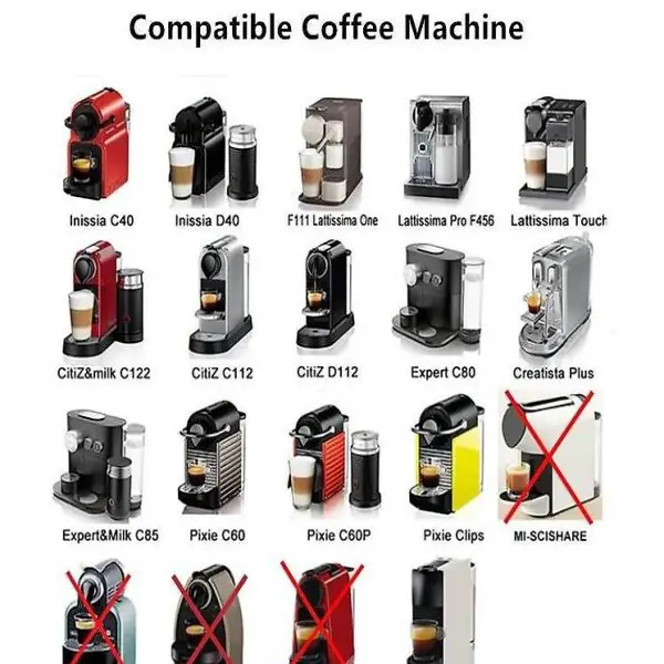Siehe Bilder für Kompatibilität und Kapselgrössen.