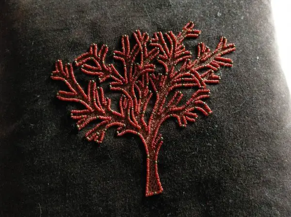 aufwendig von Hand bestickt mit Perlen, Rückseite Leinen