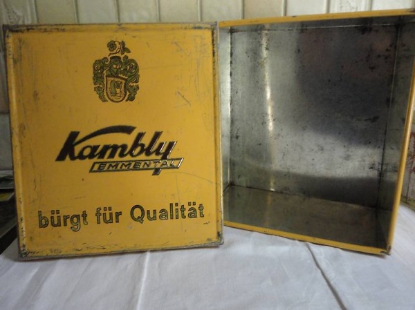 KAMBLY, Kambly, EMMENTAL bürgt für Qualität, La Maison de Confiance, Bisquits Confiserie, Kambly Emmental, alle 4 Seiten sind beschriftet, die Blechdose ist uralt, stammt aus
