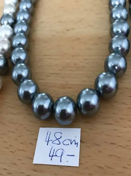 - Perlenkette, silberfarbig, Karabinerverschluss, neu, Unikat, Länge 48cm, Fr. 49.-
