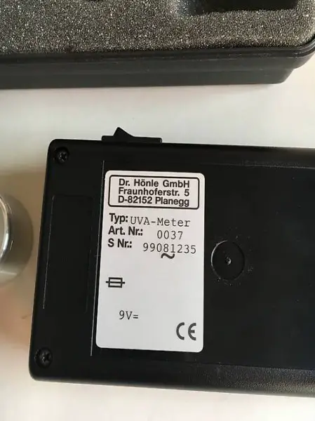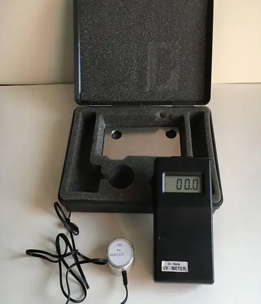 Instrument zur Messung von UV-Strahlen, Messung der Box 24x17x6 cm.