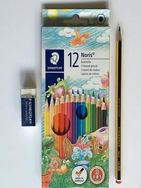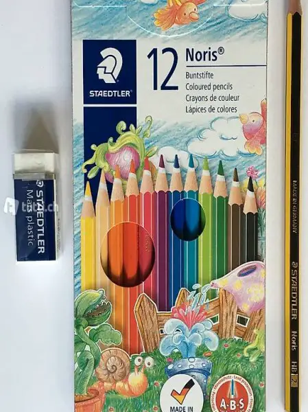 Inhalt: 12 Stk. Farbstifte, 1 Bleistift, 1 Radierer