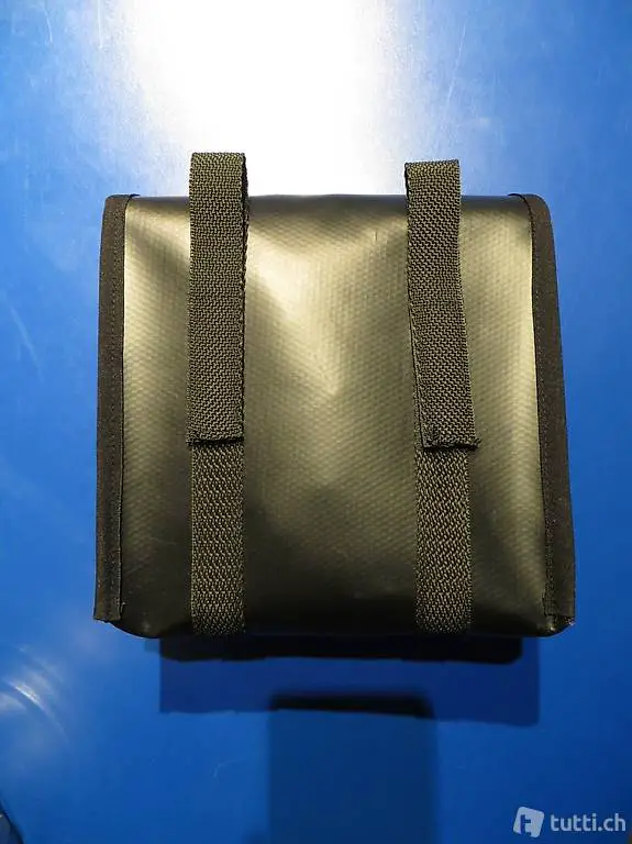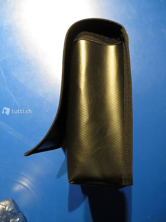 Tasche am Lenker befestigen. Schwarze Blache, reflektierender