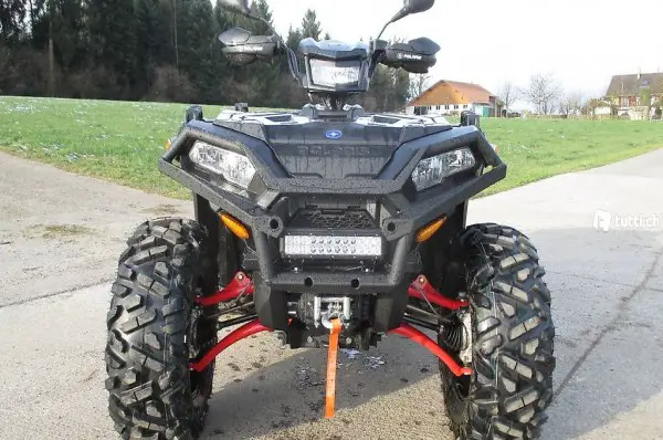 Inklusive : 8-fach Bereifung mit Felgen vo 27x10-14, hi 27x12-14, Front Bumper, Handschütze, AHK mit Stecker, LED Bar vo, LED als Rückfahrleuchte geschaltet.