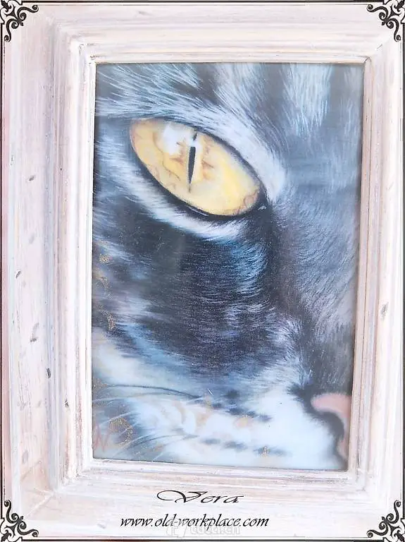 Katzenbild Enkaustik Holzrahmen Vintage