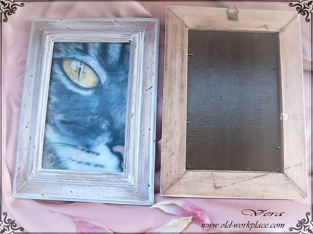 In einem alten Holzrähmchen, die in einem Vintage Look / Shabby bearbeitet wurden.