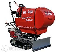 Gerät ist laut Hersteller für Reiterhöfe, Pferdezucht, Viehzucht genauso interessant wie für dieStädtereinigung, Festplatzreinigung oder auch Obstbauern zum Einsammeln von Fallobst. Durch die enorme Saugleistung und dem Inhalt von 520 Liter ist der Verwendbarkeit keine Grenzen gesetzt. Das Standardgerät ist mit folgendem Lieferumfang ausgerüstet: Radachse / Zugdeichsel, Stützrad, Saugrohrhalter, Saugschlauch 3mtr. und grossem Feinfilter. Der Multi-Sauger kann auch optional auf eine Elektroschubkarre Typ MCE400 oder für extreme Bodenverhältnisse und hängiges Gelände auch auf einen Raupendumer Typ RC350/RC500 aufgebaut werden. An die Elektroschubkarre kann darüber hinaus ein elektrisch angetriebener Kehrbesen und ein Schneeschild montiert werden.