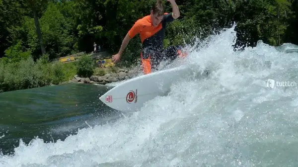 5-10x19.6x2.15. Hollow Salomon S-Core, front and tail pad, nose tip and Future fins systems, Available at the first Surf Shop in Switzerland since 1995. Please call Daniel for a appointment at the Shop located in Regensdorf. He speaks Swiss German, German, Italian, Spanish, Portuguese and English. attached illustrative Surfing pictures.