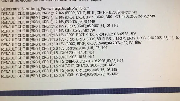 Neues originalverpackes Renault Schlusslichtglas links für Renault Clio III.