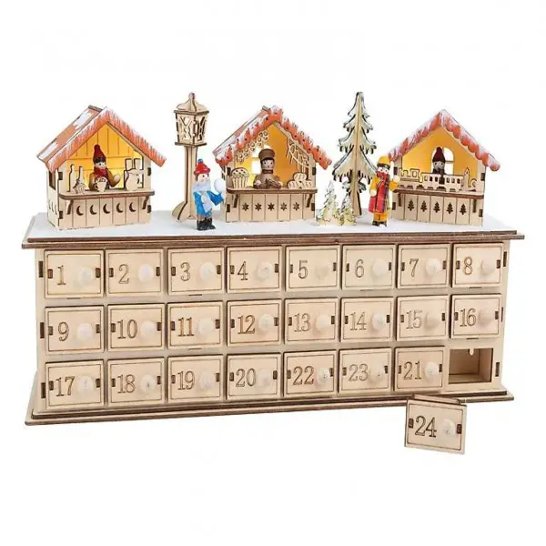 Calendrier de l'Avent avec lumière, bois, à remplir soi même