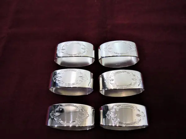 6 Serviettenringe Ostfriesenmuster-90 von der Firma Auerhahn aus Deutschland 90 Gramm versilbert.