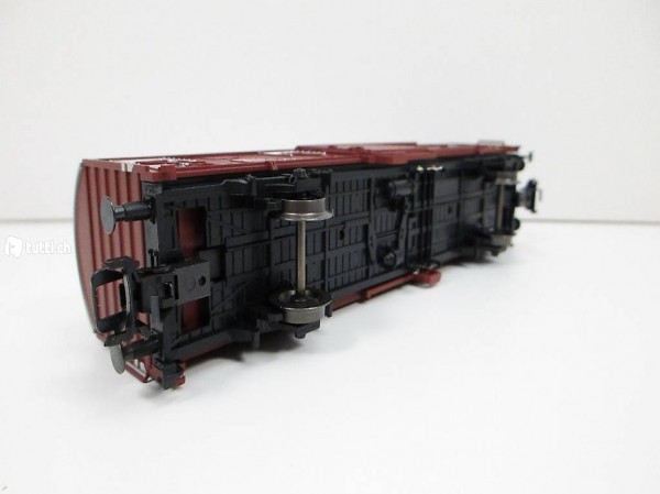 Güterwagen mit Stahlblechwänden in Spundwandform der Bauart Gbs 256 (Glmms 64) der Deutschen Bundesbahn (DB).