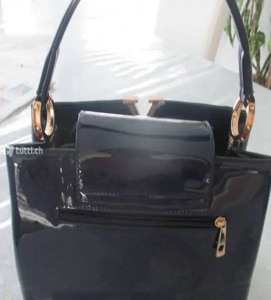 LAckLEDER HANDTASCHE -V glänzende und elegant, marine inkl. Versand