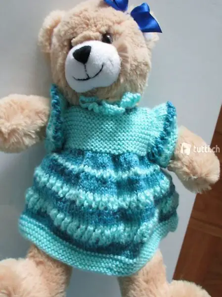 In sehr gutem Zustand da neu. Kleidchen vom Teddybär wurde von Hand mit voller Liebe gehäkelt.