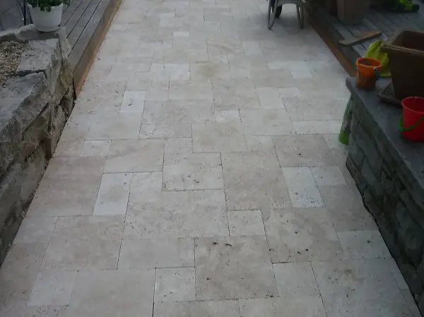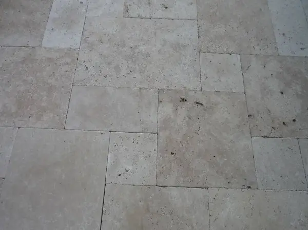 Naturstein Travertin Hell Gartenplatten Bodenplatten ca. 3 cm stark Sichtflächen antik (getrommelt)