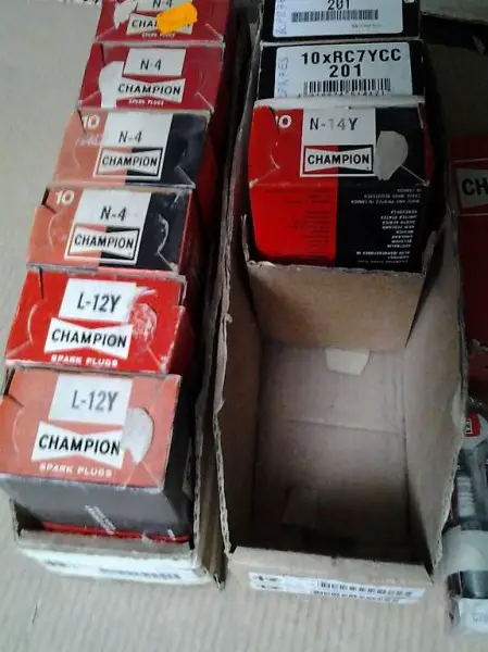 Bougies Champion diverses, NA-12, N-4, N-14Y, L-12Y, RC7YCC, RN7YCC, C7YC, L82YC. Prix 8.- la bougies.