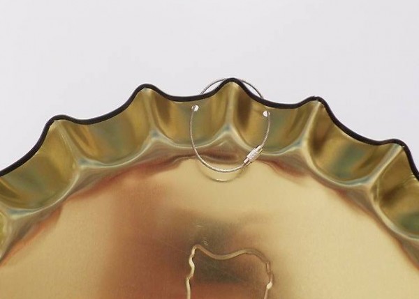 Metall Schild in Deckelform.