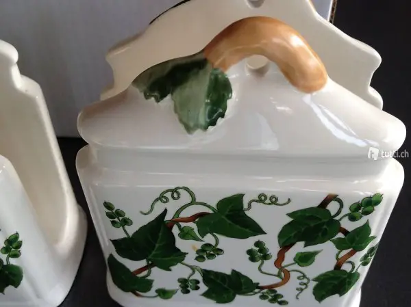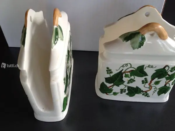 auch einzeln- zwei sehr schöne Servietten halter aus Keramik oder Porzellan mit handbemalter Verzierung