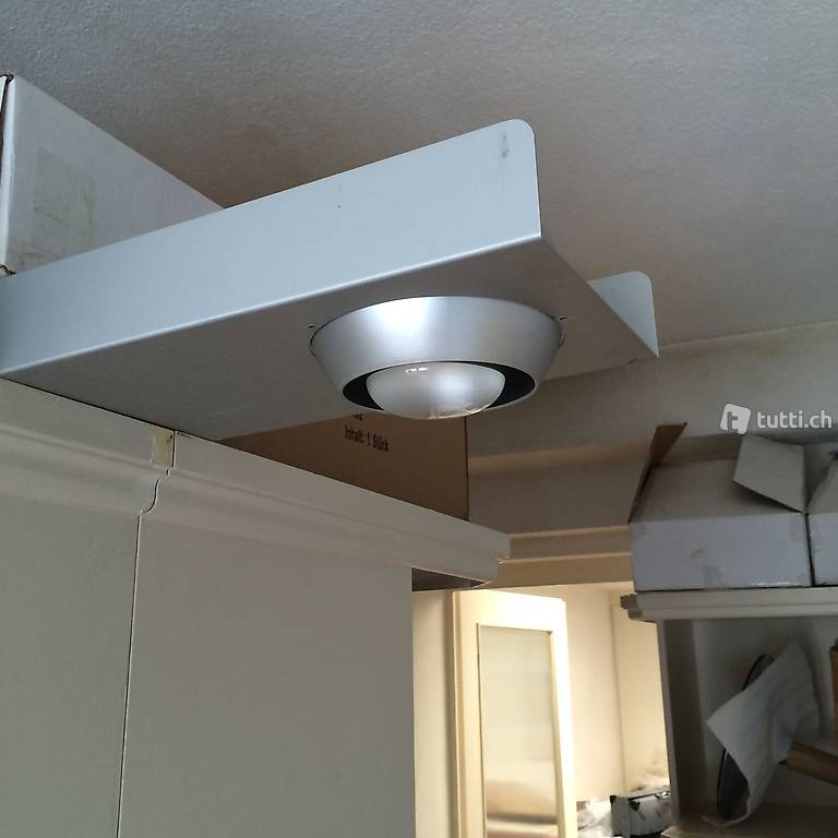 Wandstrahler mit einsetzbarer, drehbarer Kugel für Leuchtmittel, wird in eine runde Oeffnung eingesetzt und kann dadurch an die auszuleuchtende Fläche flexibel positioniert werden
