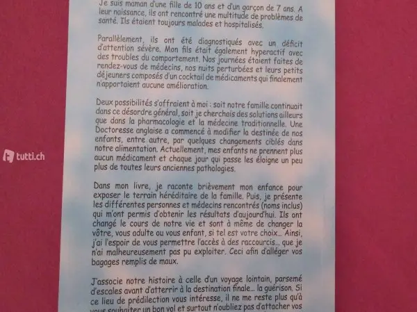 Deux possibilités s'offraient à moi : soit notre famille continuait dans ce désordre général, soit je cherchais des solutions ailleurs que dans la pharmacologie et la médecine traditionnelle. Une Doctoresse anglaise a commencé à modifier la destinée de nos enfants, entre autre, par quelques changements ciblés dans notre alimentation. Actuellement, mes enfants ne prennent plus aucun médicament et chaque jour qui passe les éloigne un peu plus de leurs anciennes pathologies.