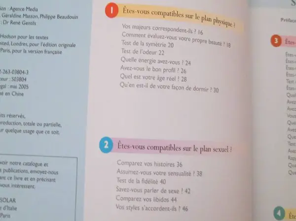 Vous l'aimez, il ou elle vous aime, mais... comment savoir si vous êtes faits l'un pour l'autre ? Une belle histoire d'amour, riche, harmonieuse et longue repose certes sur les sentiments, mais aussi plus globalement sur un certain nombre d'affinités qui permettent de partager toute une vie au quotidien... Cet ouvrage, destiné aux amoureux de tous âges, vous aidera à y voir plus clair grâce à une cinquantaine de questionnaires ludique instructifs à réaliser seul(e) ou à deux. Vous pourrez tester, en vous amusant, l'harmonie de votre couple sur tous les plans : Physique, Sexuel, Psychologique, Socio-économique , Psychique. Une analyse complète et détaillée des résultats de chaque test vous permettra de faire le point sur vos éventuelles divergences. Des conseils précis vous offriront alors les solutions concrètes aux problèmes que vous aurez mis à jour. Et vous serez enfin certain(e) que vous avez choisi le bon partenaire !