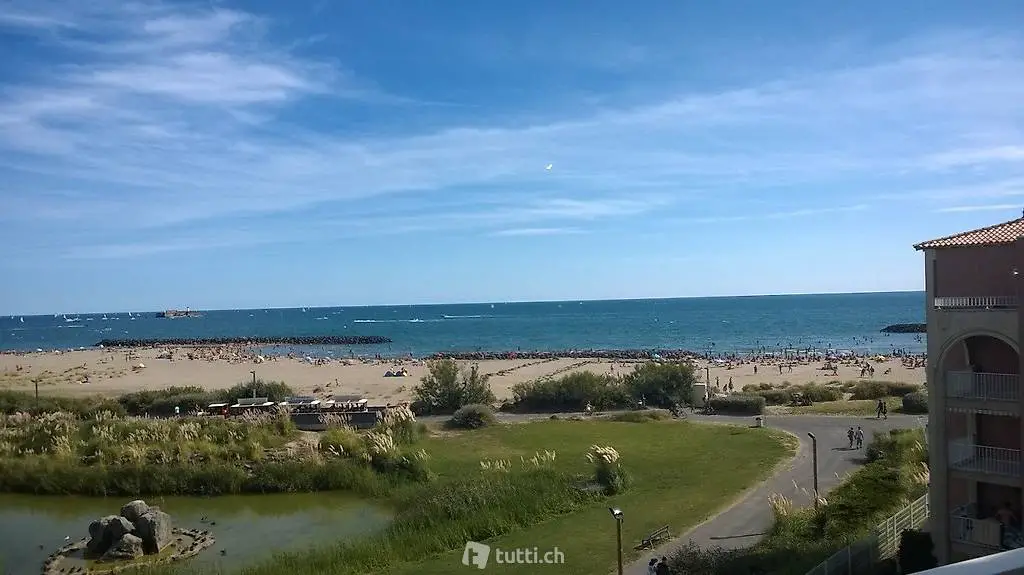 Au pied de la plage de sable fin : appartement 2,5 pièces, juste au bord de la mer, bien équipé pour 4 à 6 personnes.