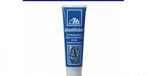 ATE Plastilube ist ein unentbehrlicher Schmierstoff für die Bremsenreparatur. Der Spezialschmierstoff verhindert das Festrosten der Bremsbeläge in den Bremssattelführungen und das Entstehen von Bremsenquietschen. Dazu müssen vor der Montage der Bremse alle Führungsflächen am