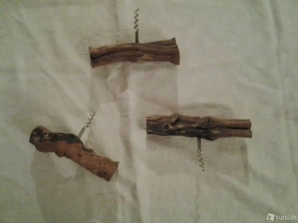 3 tire-bouchons, pour gaucher. poncé, traité contre la vermine, pas encore laqués. Travail à la main. Neufs