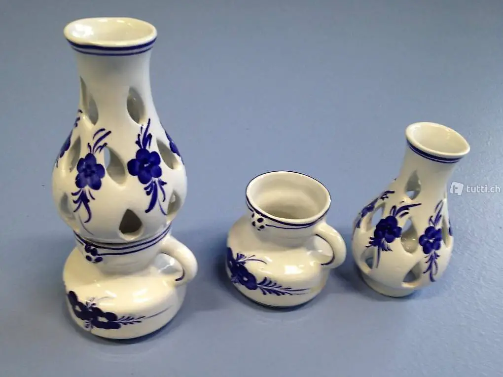 Windlicht weiss/blau, handgefertigt aus Portugal. Höhe ca. 18cm