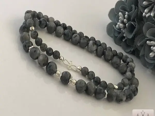 2 Labradorit Armbänder mit Gummizug und 925 Silber Elementen.