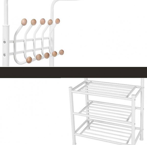 mit 3 schuhablagen mit 18 Haken aus Metall, weiss