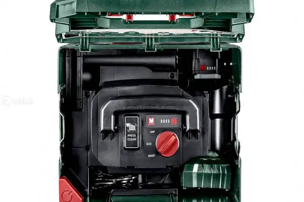 - PressClean: manuelle Filterabreinigung durch starken Luftstrom bei Schalterbetätigung am Sauger in den Arbeitspausen