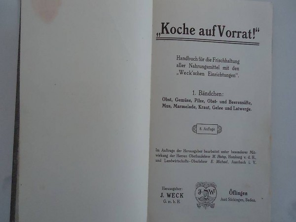 1. Bändchen: Obst, Gemüse, Pilze, Obst- und Beerensäfte, Mus, Marmelade, Kraut, Gelee und Latwerge.
