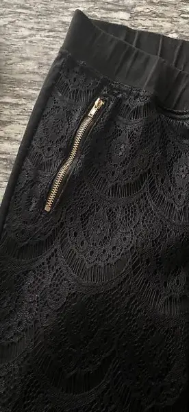 Schöne schwarze elastische hosen mit vorne tollem muster nur einmal getragen ( leider zu klein gekauft)